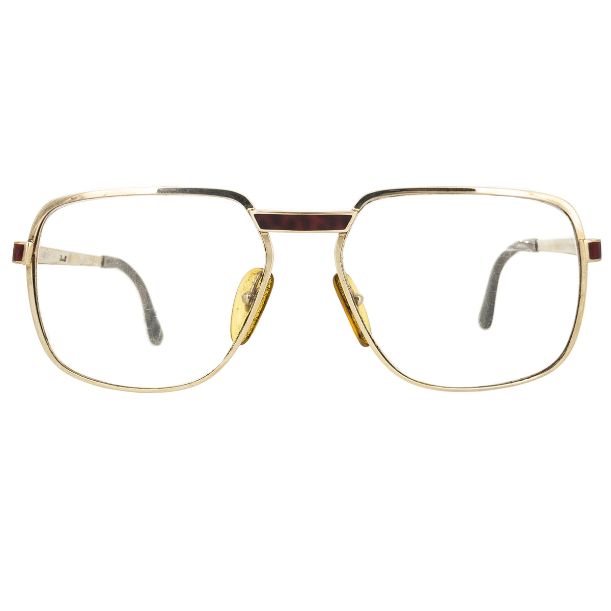 Vintage Soft Square Gold Metal Frame With Red Leopard Bridge And Temples, And Clear A/R Coated Lenses