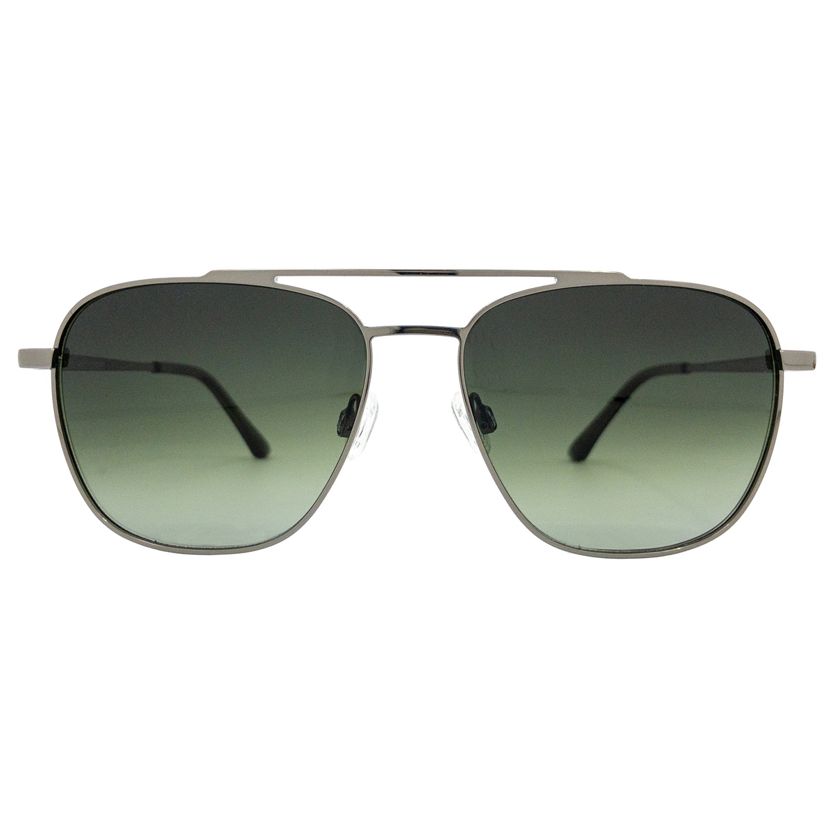 Classic Shiny Silver Squared Navigator Metal Frames With Double Bridge And Tinted A/R Coated Lenses