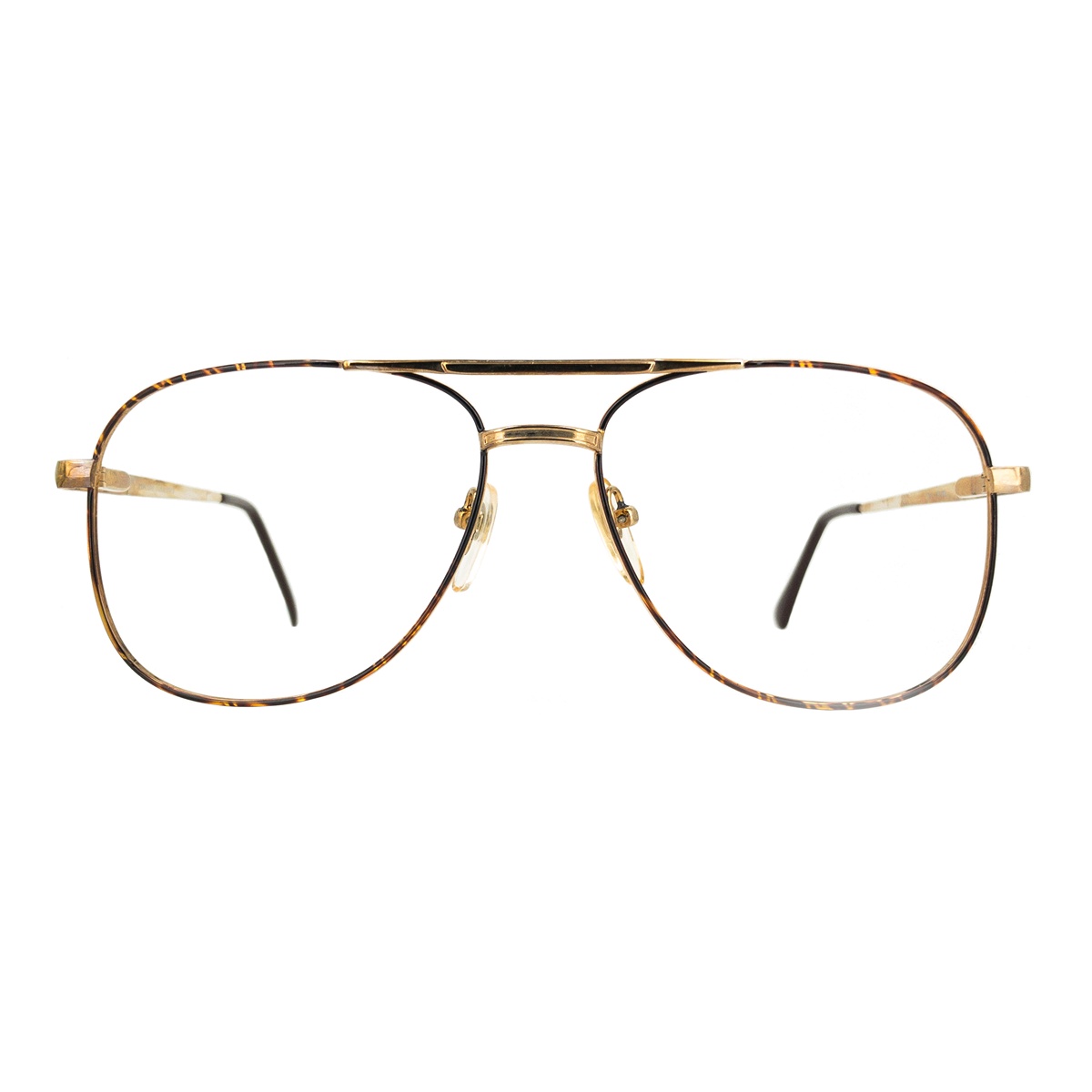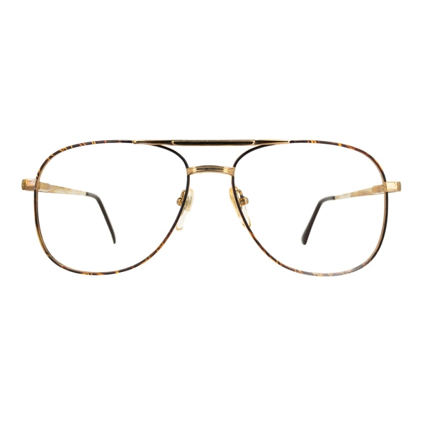 Matte And Shiny Gold Square Navigator Metal Frames With Double Bridge And Clear A/R Coated Lenses