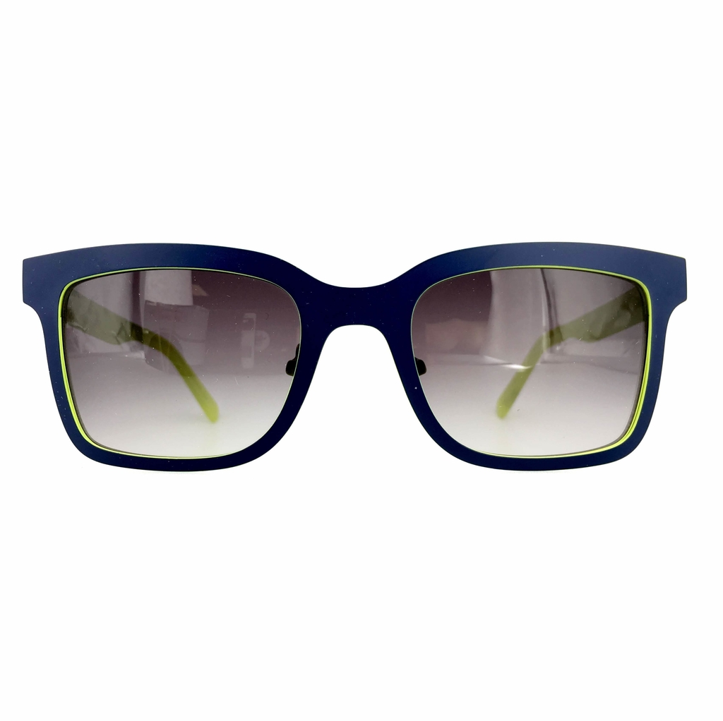 Unisex Navy Blue/Lime Green Rectangular Metal Frame With A/R Coated Sun Lenses